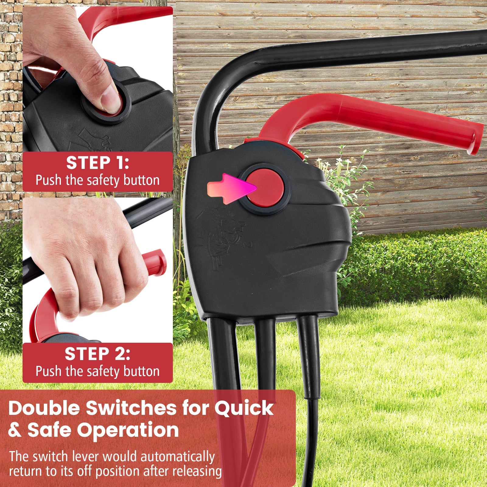 x● 3 position adjustment from 1" to 2.5"● Equipped with foldable handle for easy storage● The safe electronic start add extra safety for user● The 1200W power 615W output motor operates stably at 110V voltage● 13-inch cutting width of the lawn mower assures quicker mowing● Fitted with 25L collection box to store grass clippings● With folding handle the mower can be fold down to compact size