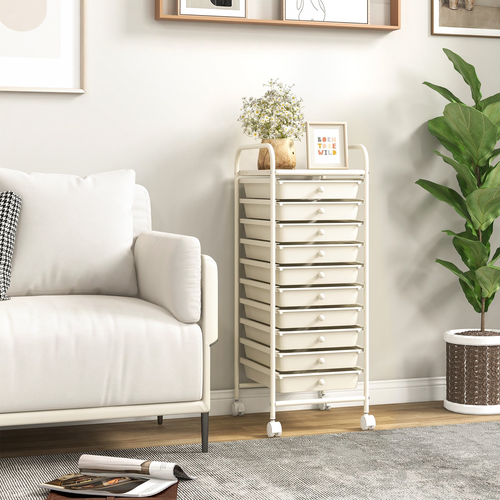 10 Drawer Rolling Storage Cart Organizer with 4 Universal Casters-White