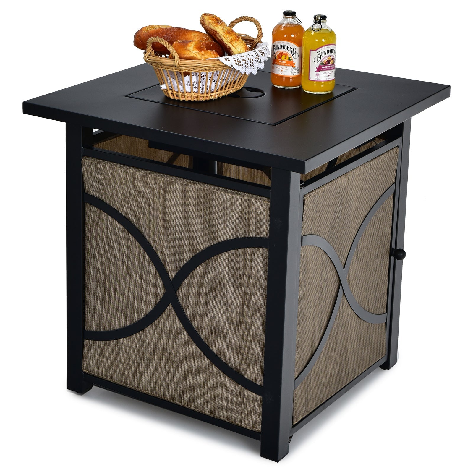 x● Brings sufficient warmth thanks to its 40 000 BTU● Ensures security because of its CSA certification● Creates a clean and comfy environment with smokeless design● Mesmerizing flames and beautiful fire glass for attraction● Rotary control knob for flame adjustment● Uses as an outdoor fire table or coffee table with removable lid● Can be used for a long time with anti-rust steel frame and fast-drying fabric● Ideal for different outdoor places such as patio backyard and garden etc● Suitable for 20 lbs LP gas tank (not included)● Easy access door with handle for propane tank exchange● Built-in fixing hoop for keeping the LP gas tank firmly● Detailed instruction for easy assemblyInstallation guide
