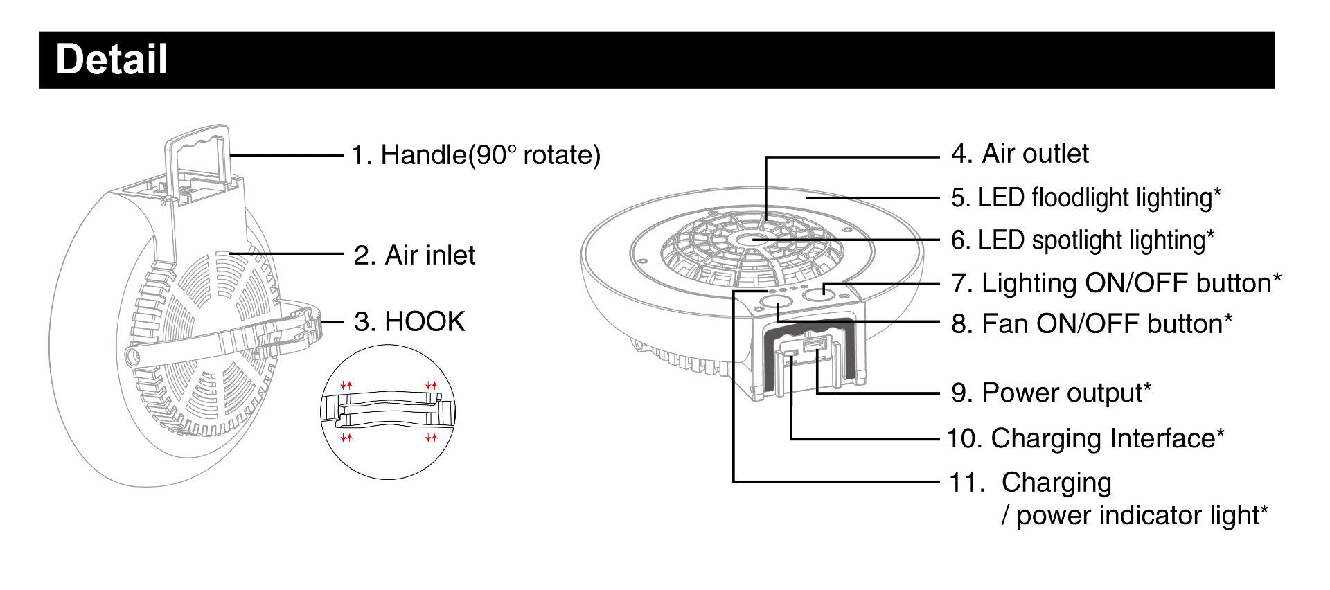LiteBreeze LED FAN LIGHT LED Light In Disc Shape POWERBANK Rechargeable Battery, Acts As Power Bank To Charge Your Mobile While On The Go WORKING HOURS 8-24 Hours On Brightness Level CARE INSTRUCTIONS Keep it Dry BATTERIES INCLUDED Yes. Lithium Rechargeable POWER SOURCE Plug-In MATERIAL Aluminum & Plastic INCLUDED IN THE BOX Disk Fan Light + Charging Cable + Manual WARRANTY 6 Months